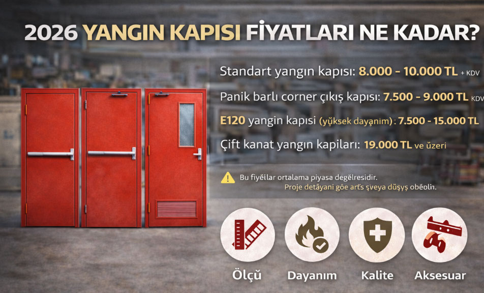 Yangın kapısı satın alırken en çok araştırılan konu hiç değişmiyor: fiyat. Ancak bu ürünlerde tek bir sabit fiyat yoktur. Çünkü bir yangın kapısı, standart bir kapı gibi değil; ölçüye, teknik özelliklere ve kullanım alanına göre ş...